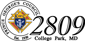 Prince Georges Council No. 2809 was instituted June 18, 1939, culminating the efforts of a band of forward looking Catholic gentlemen from Saint James in Mount Rainier, Saint Jerome’s in Hyattsville and Holy Redeemer in College Park. These men visualized the eventual growth of population in Prince Georges County and saw the need for a Council in this part of the County. The first degree was held for a class of sixty men at St. Martin’s School in Gaithersburg on the institution date. The first Grand Knight elected was Caesar L. Aiello and the membership grew in the first year to 184 members. The formal presentation of our Charter was made on February 24, 1941, by Maryland State Deputy James Loeffier. We were, at that time, part of the 9th District, Maryland State Council, along with three other Councils in Montgomery County.